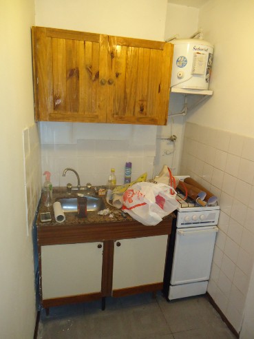 * COCINA: Muebles bajo mesada y alacena, bacha de acero, termotanque y cocina.