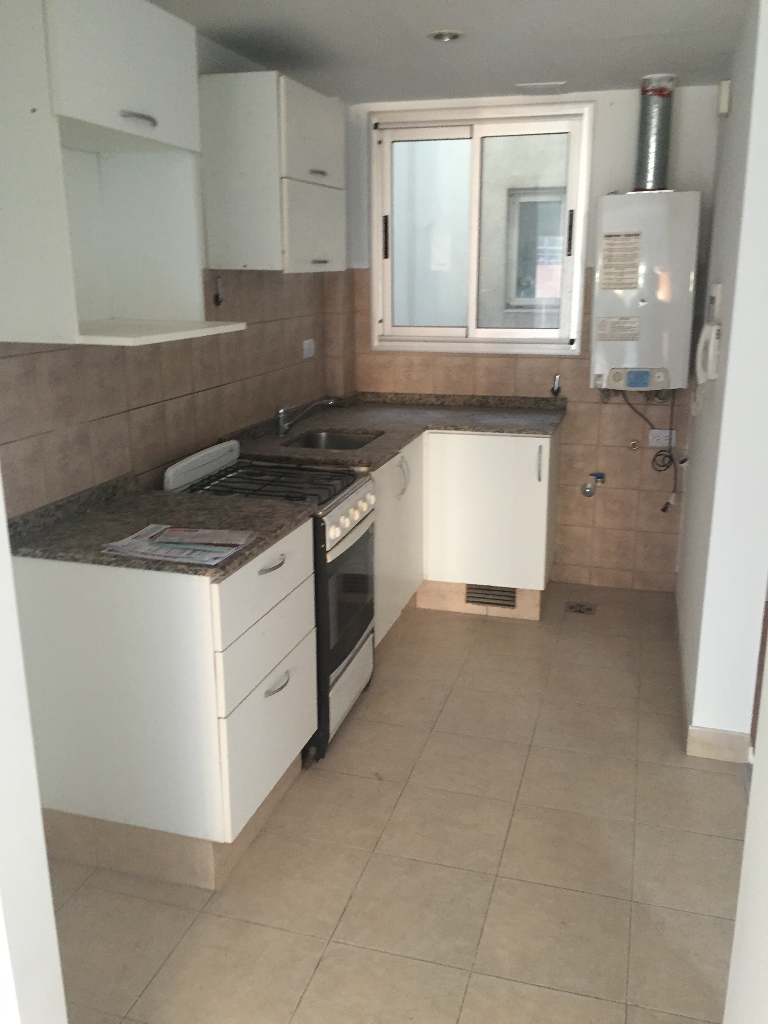 * COCINA: integrada. Equipada con horno a gas y caldera Dual. Con Mueble bajo mesada, Mesada de Granito y Alacenas.