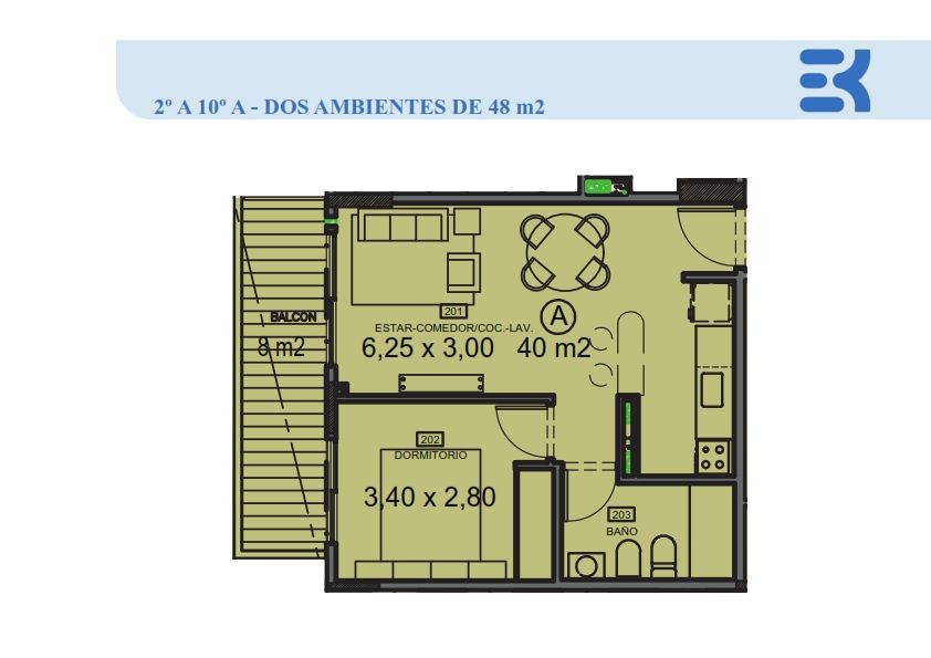 Segundo piso al frente! Living comedor con salida al balcon, dormitorio con placard, baño completo con bañadera, cocina con gas natural, barra desayunador, espacio para heladera y lavarropas. Sup Total: 48m2.- Cubiertos 40m2 y 8m2 de Balcon.