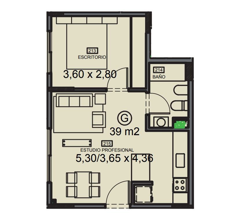 Septimo piso interno luminoso! Living comedor, dormitorio con placard, baño completo con bañadera, cocina con gas natural, barra desayunador, espacio para heladera y lavarropas. Sup Total: 39m2.-