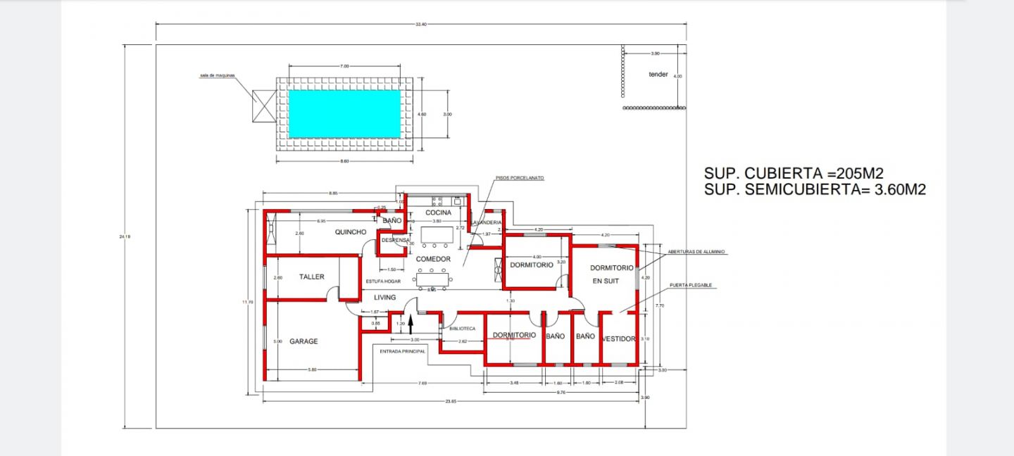 El quincho cerrado con parrilla amplía el espacio social y se conecta al jardín con piscina de 7 × 3 m, ideal para disfrutar del verano con familia y amigos. Además, cuenta con un consultorio independiente perfecto para uso profesional o estudio privado y garage con capacidad para tres vehículos.